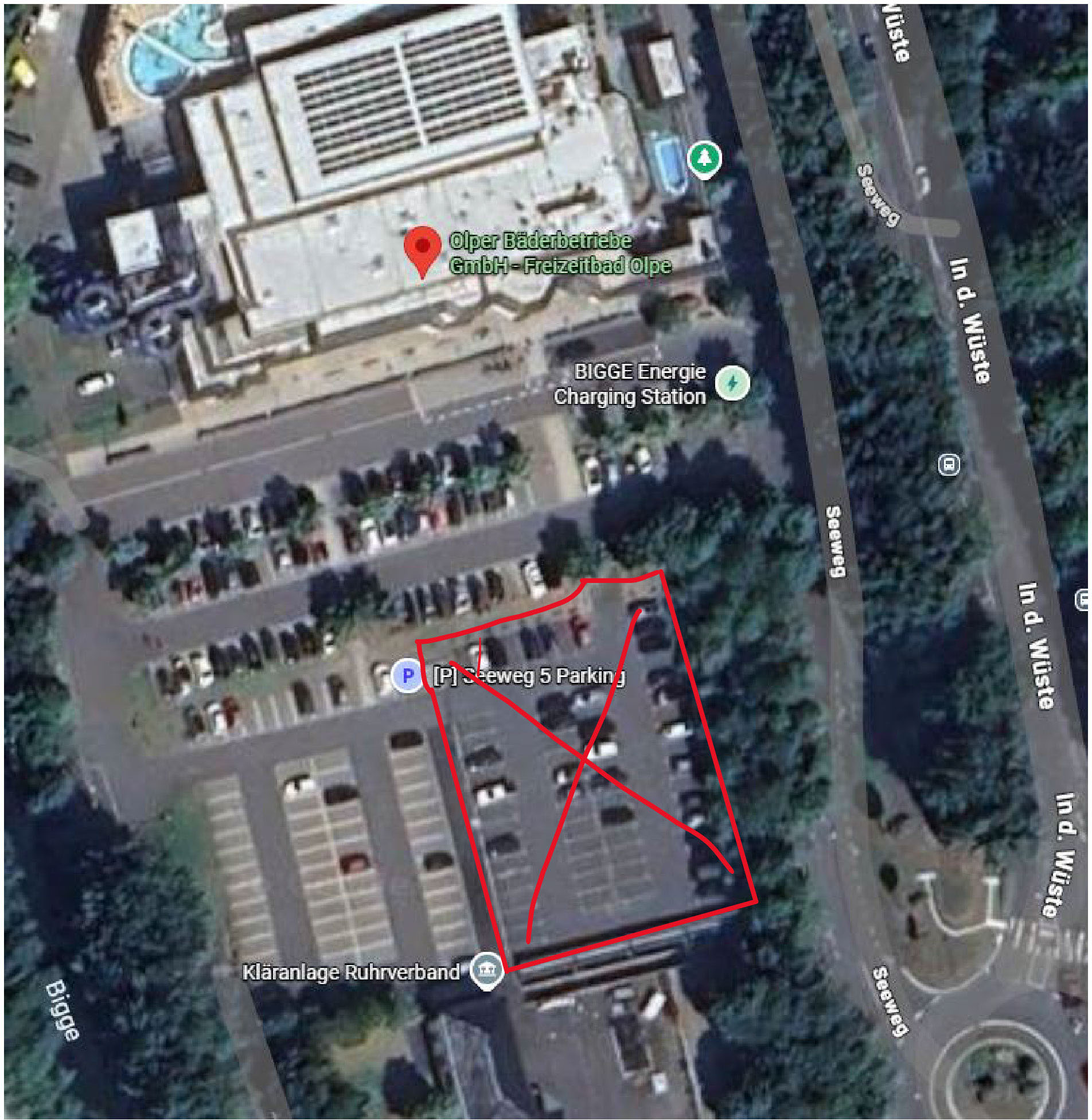 Ab Montag, 09.03.2026, wird die linke untere Hälfte des Parkplatzes (siehe rot markierter Bereich im Bild) vorübergehend gesperrt. Grund dafür sind kleinere Sanierungsmaßnahmen an der Oberfläche. Wir bitten alle Besucher/innen, während dieser Zeit die anderen verfügbaren Parkflächen zu nutzen. Vielen Dank für Ihr Verständnis und Ihre Rücksichtnahme.